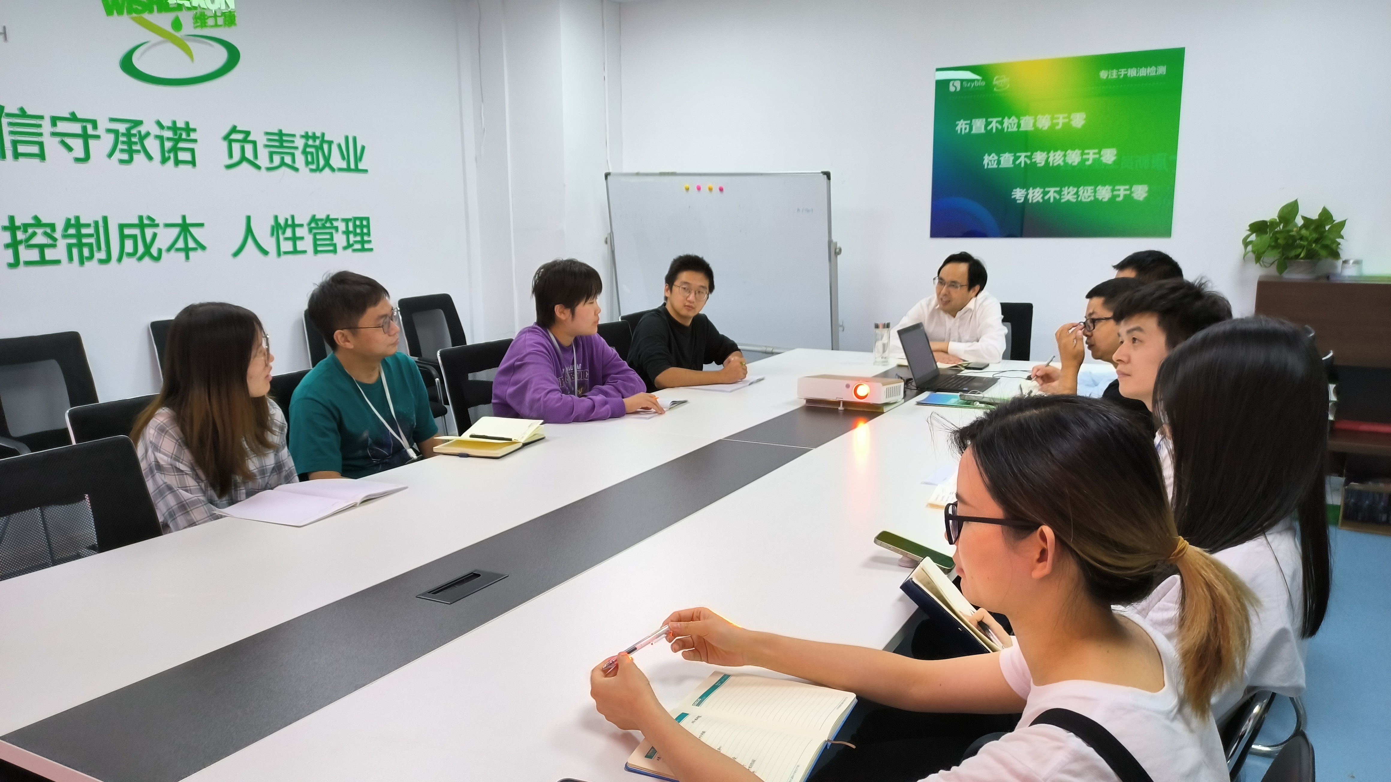 9月21日下午,华美维士康生物工程有限公司在B13会议室举行了下半年度新员工座谈会。华美维士康总经理尚贤军主持会议,技术销售服务部经理夏欣,研发生产部经理刘华兵,七位新同事参加会议。
