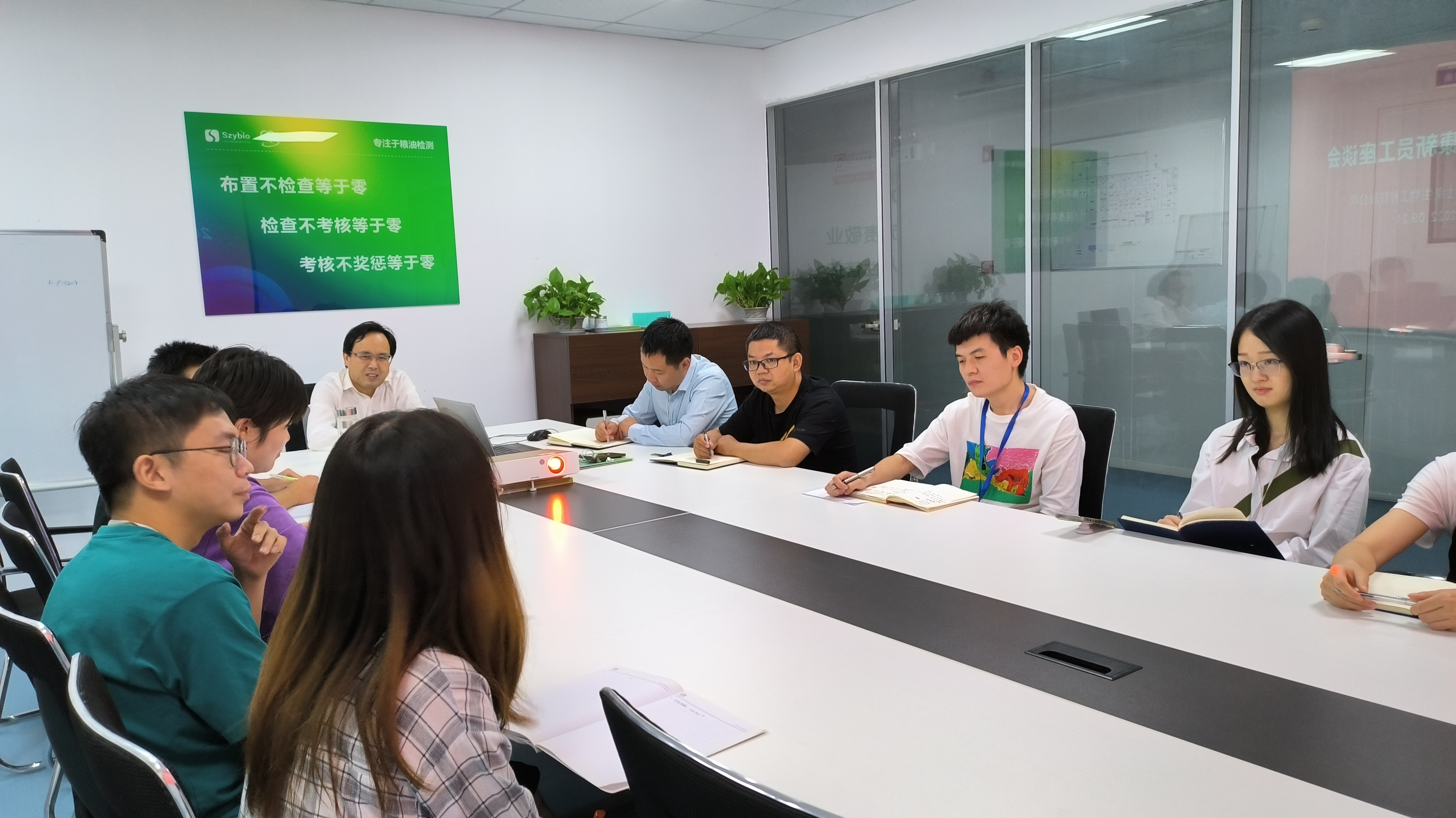 会议在轻松的氛围中开场,尚总让大家依次自我介绍,提升新同事之间熟悉度。并让大家畅所欲言入职以来对公司、工作的想法,有哪些遇到的困难需要帮助和对目前出现问题的建议。各位同事都积极发言,真诚全面地分享了自己入职以来的感受。