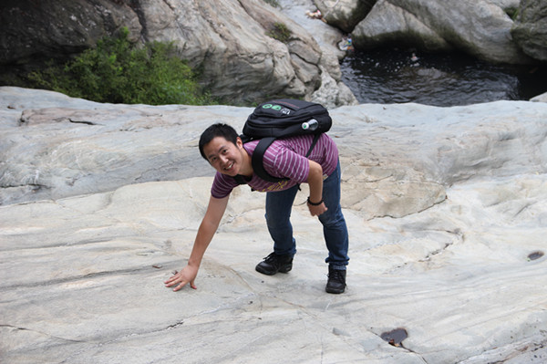 缘溪行,景色虽比不上桃花源,人造痕迹也较重;但溪水潺潺,整个林子因此也添了些许灵气,尤其是水草,被溪水冲洗得一尘不染,绿如碧玉,剔透极了。穿过小天池、聪明泉、龙脊石、镇龙石、穿瀑崖等后,突然觉得给景点取名的人一定深谙 “水不在深,有龙则灵”之道。如果这样的水深能藏龙的话,那一定是龙宝宝。